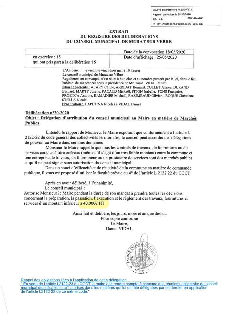 Délégations au maire