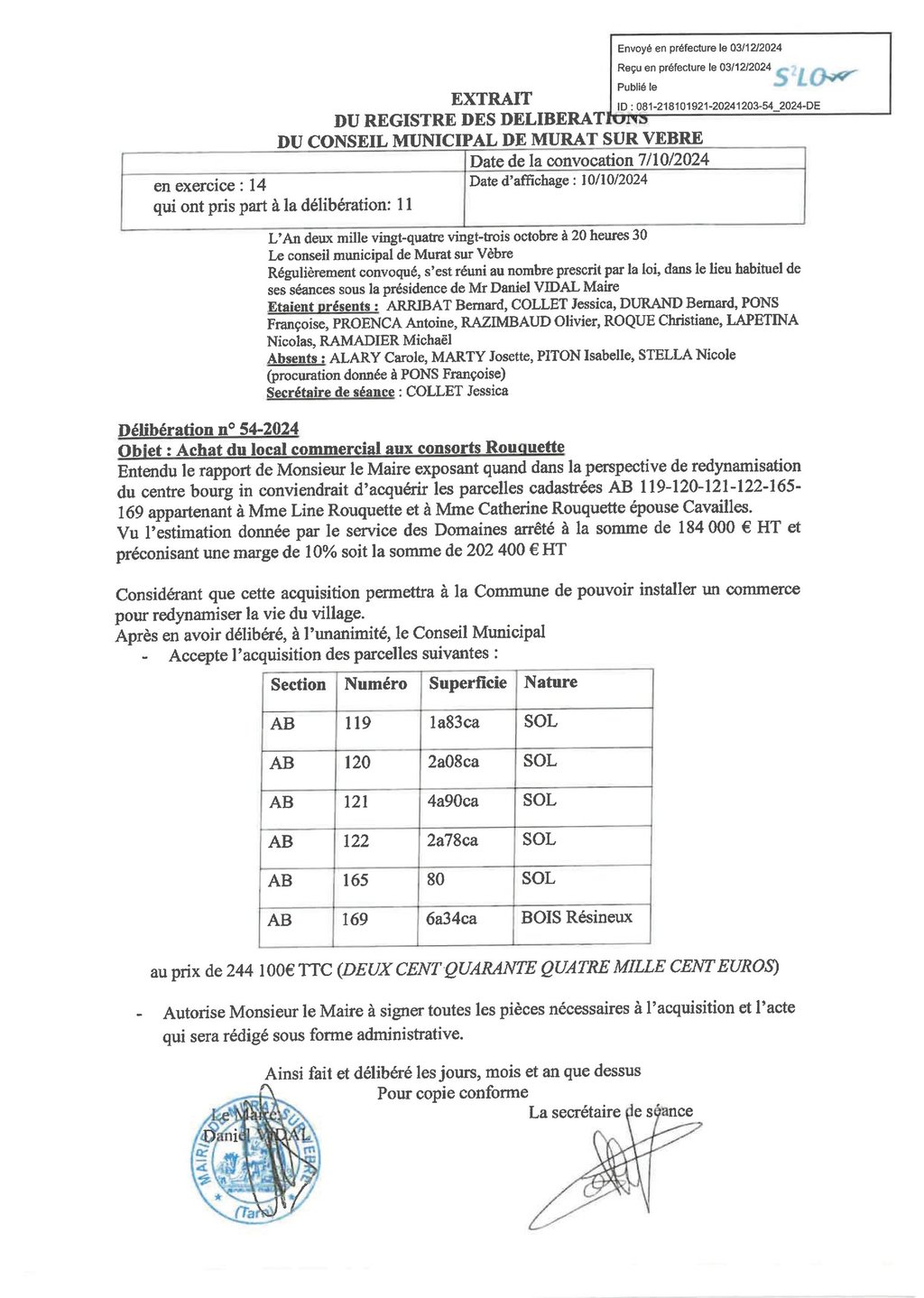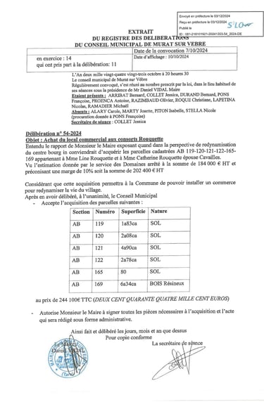 Délibération achat garage Rouquette
