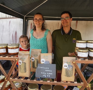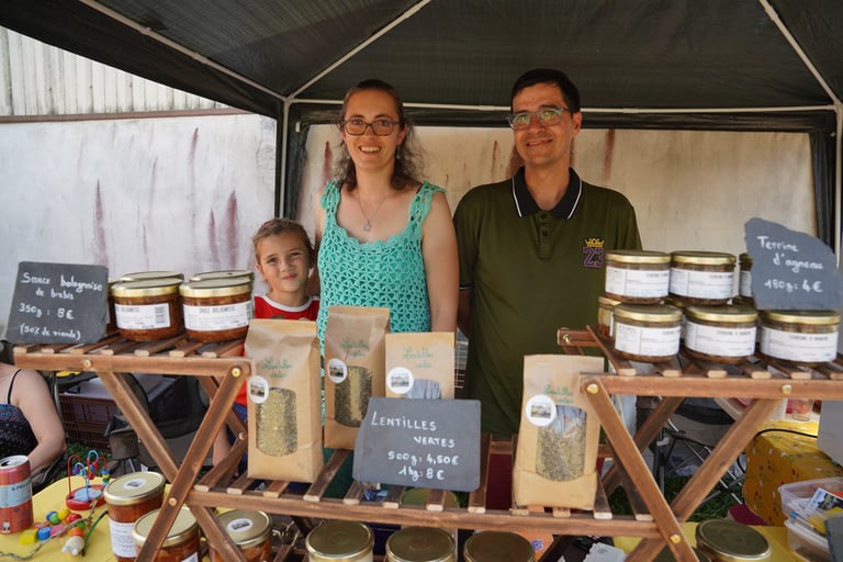 "Avec mon épouse Maylis nous nous sommes rencontrés durant la préparation de notre BTS A analyse et conduite de systèmes d'expoitations agricoles à Verdalle. Après une expérience d'une dizaine d'années comme fermiers dans l'Aveyron, nous avons décidé de franchir le pas et nous avons acheté la ferme de Boissezon il y a six ans. Nous cherchions un endroit plutôt montagneux où coulait une rivière. Nous sommes tombés sous le charme de cette nature restée encore sauvage. Nos 350 brebis produisent du lait pour roquefort. En bons paysans nous n'avons pas mis nos deux pieds dans le même sabot. Les agneaux sont vendus à la découpe. Les jeunes brebis sont transformées en plats cuisinés, que nous commercialisons sur les marchés et dans notre boutique de la ferme. C'est formidable de pouvoir vivre de sa passion." Mélina, une des deux enfants du couple conclu à la mode d'un slogan "Ça nous apporte la joie de vivre !".